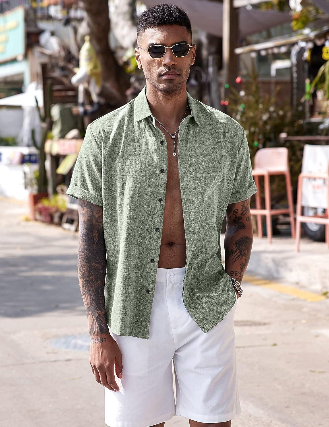 • CASUAL & FASHION — Mens Casual Linen Shirts comes with button-down closure, short sleeve, adjustable cuff, silm fit, solid color. Casual Beach Style Design to make you feel better about this summer