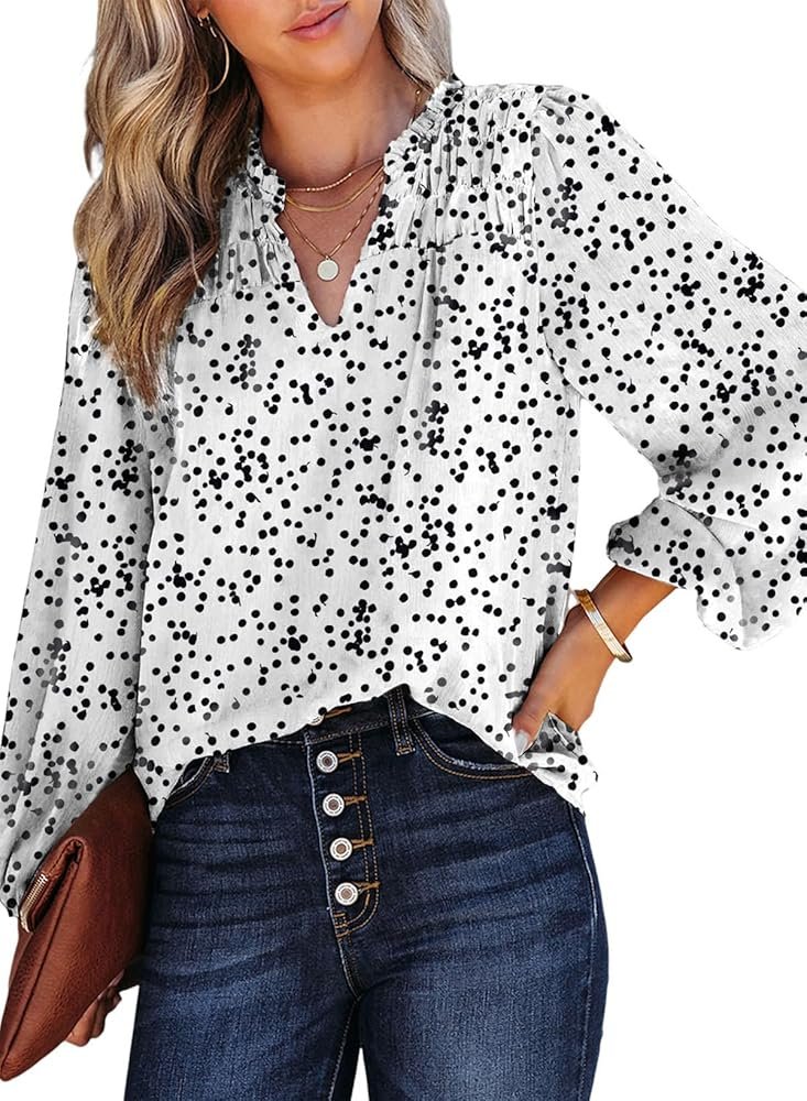 - Features: Elegant Boho Shirt for Women, Sexy Casual V Neck Blouse, Relaxed Fit, Blouses for women fashion 2025, Womens Tops and Blouses, Long Sleeves with Elastic Cuffs, Cute Tops for Women Trendy, Alicia Flowy Print, Back Smocked, Business dressy work tops for women.